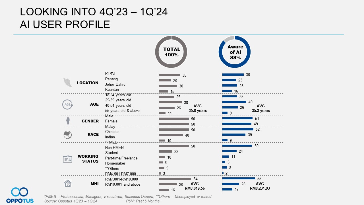 As a segment, AI users in Malaysia are seen to skew towards 25-39 years old PMEBs from Penang.