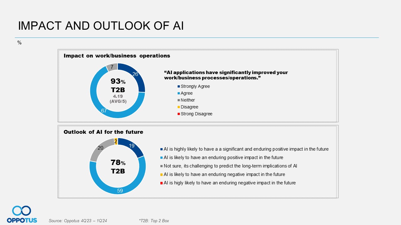 Finally, when it comes to how Malaysians view the impact and outlook of AI going into the future: it appears that AI is likely to gain an increasing foothold amongst businesses in Malaysia as 93% of the AI users in the past 6 months either agreed or strongly agreed that AI applications have had a positive impact on their business operations.