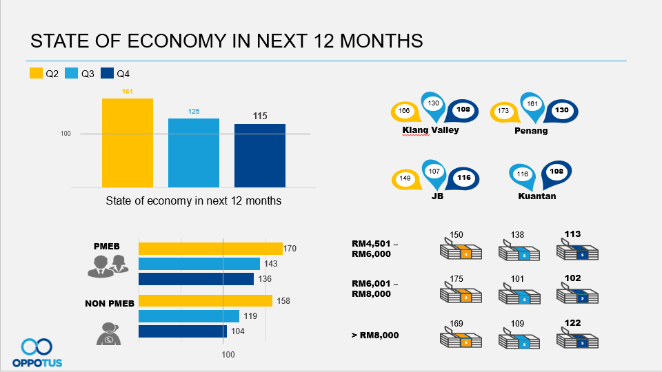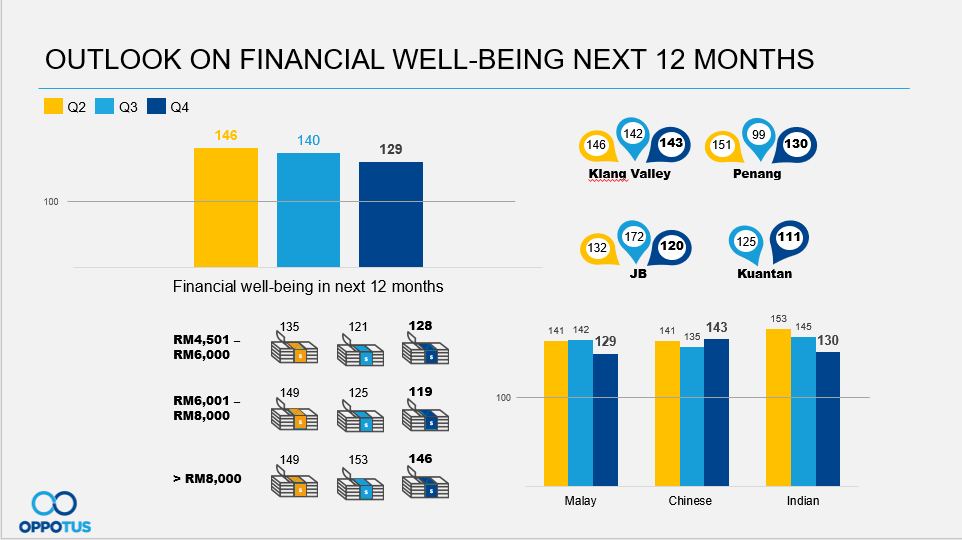 However, when Malaysians were asked about their financial outlook for the next 12 months, the overall sentiment sees contraction in Q4, although the index still remains on the positive side.